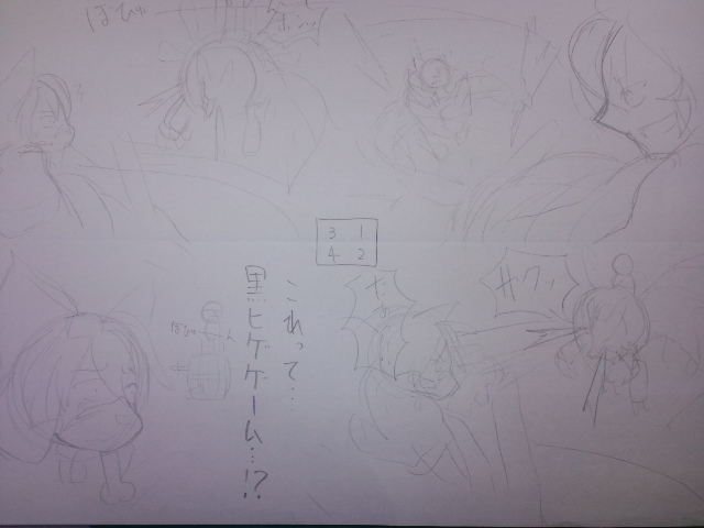 部屋を掃除してたら、ソラトロボのファンブックに投稿した4コマの元ネタのラフが出てきた!線が薄くてわかりにくいけど、ほとんど一緒の構図(笑)
