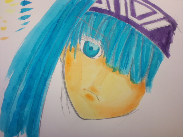 続いて、何年か前にエレメンタルジェレイドっていう漫画の模写してカラーインクで塗ったやつ。半端な顔で若干怖い…(^q^)