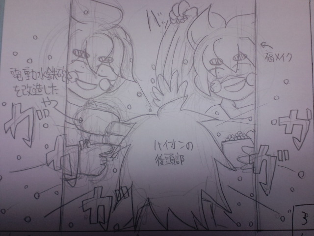 そして煎り豆マシンガンとか思いついたもんだから性懲りもなくこーいう落書きをし出す始末wwwバイオンおとーさん鬼役www