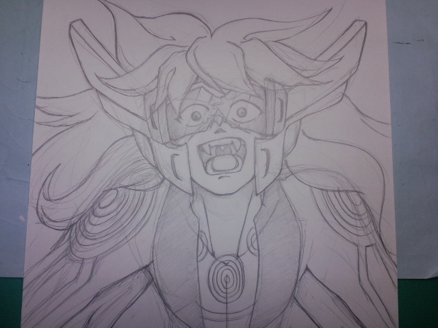 ちょっと美術のスケッチ風。荒ぶる竜のイメージ。目線が狂った。