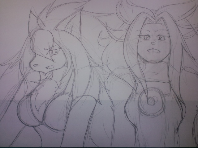 ハイブリッド妄想話の1シーン落書きを投下(^q^)