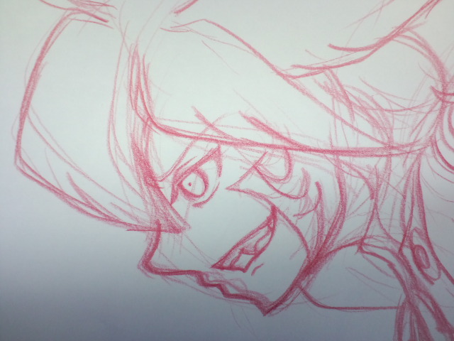 昨日の夜中に唐突に赤色鉛筆でゴリゴリ絵を書き始めたらこうなった(^q^)