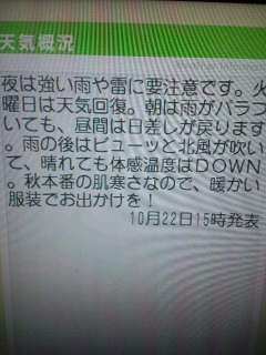 そしてさっきテレビの天気予報のコメント見てワロタwwwなんか前半は普通の文章なのに後半から擬音語や英語が使われててテンション高いwww