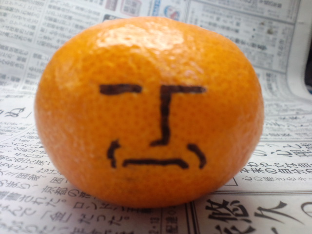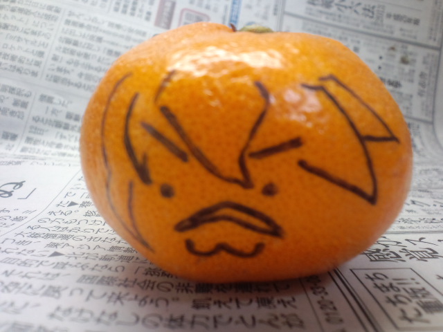 …唐突ですが、みかんに自画像を書いていらした三好さんに対抗(?)しても私もみかんに落書き☆ギャグ顔トランスレッドさん\(^q^)/www