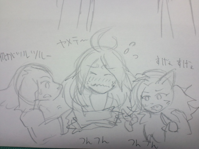そして他の主人公2人から物珍しそうにつつかれるトランスロート君(笑)自分で描いておきながらお気に入りの落書き(^q^)www